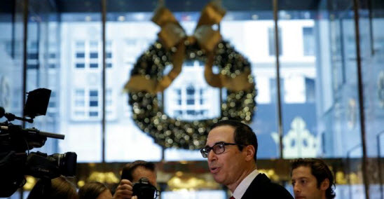 Mnuchin spoke with the chief executives of JP Morgan Chase, Bank of America, Wells Fargo, Citigroup, Goldman Sachs, and Morgan Stanley on Sunday, amid the rout on Wall Street. | | | | | Get the Investing.com App! Financial Markets on the Go | | | | | Follow us |  |  | | | | | |